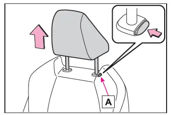 Tirez l'appuie-tête vers le haut tout en appuyant sur le bouton de déverrouillage A.